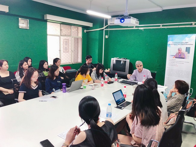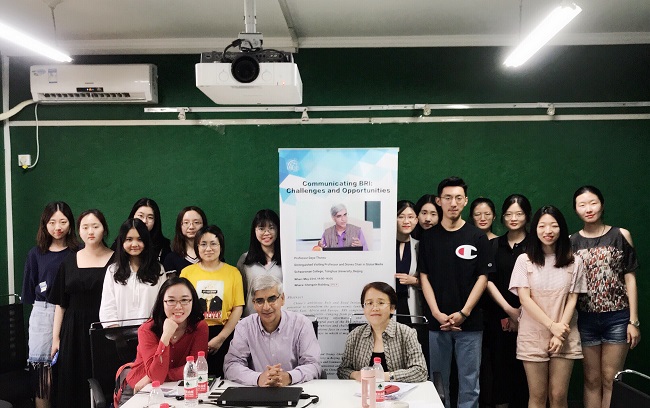 第二届“一带一路”高峰论坛成功举办之际,应我院国际财经新闻研究中心主任钱晶晶老师邀请,全球传播领域世界知名学者达雅·屠苏(Daya Thussu)教授于5月23日下午莅临威尼斯官网,就新形势下我国对外经济传播作了一场题为“传播‘一带一路’:机遇与挑战”的专题讲座。我院语言文学系主任王彦教授、外国语言学与应用语言学专业、商务口译专业以及英语财经新闻专业多名同学到场参加讲座。