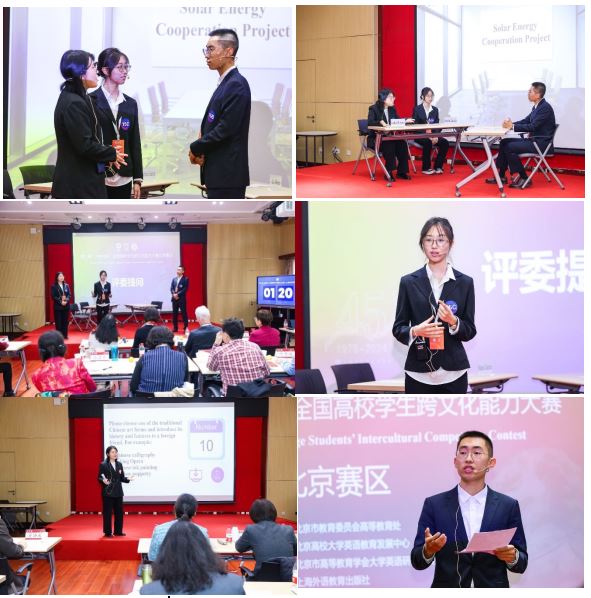 10月26日举行复赛。来自威尼斯9499登录入口、北京大学、中国人民大学、北京交通大学、中国政法大学、北京语言大学、中国社会科学院大学、国际关系学院等共38所北京知名学府的代表队齐聚一堂,展开了一场智慧与才华的较量。比赛内容丰富多彩,涵盖案例表演展示、深度案例分析、评委现场提问以及名言名句跨文化解读等多个环节,全程采用英文交流,充分考察参赛者的国际视野和语言运用能力。